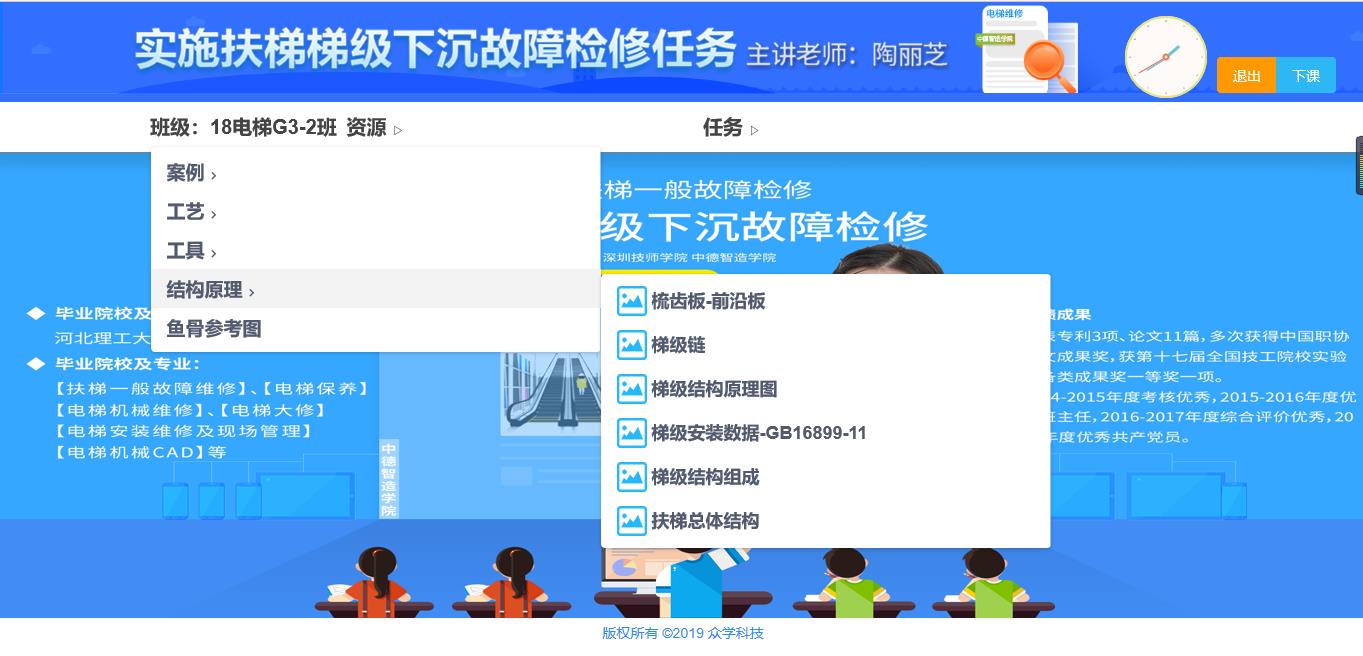 10月25日在能工樓實(shí)訓(xùn)教室舉辦了“電梯梯級(jí)下沉故障檢測(cè)”的公開課,眾學(xué)云平臺(tái)作為我公司為教學(xué)一體化開發(fā)的教學(xué)平臺(tái),覆蓋了一體化教學(xué)的全部流程,為整個(gè)公開課增色添彩。授課過(guò)程中,陶老師采用基于案例分析、角色扮演、信息化、情景導(dǎo)入等混合式教學(xué)法,以工作任務(wù)為驅(qū)動(dòng)、教師為引導(dǎo)、學(xué)生為主體,充分體現(xiàn)了“知行合一、工學(xué)結(jié)合”的教學(xué)模式,整個(gè)公開課行云流水,一氣呵成,眾學(xué)云平臺(tái)作為本次公開課的信息化載體,成為一體化教學(xué)的好幫手。