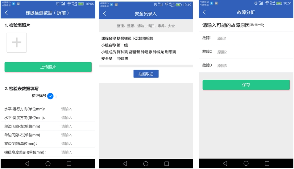3.老師布置扶梯故障檢測(cè)任務(wù),學(xué)生分組操作,在檢測(cè)期間各小組通過(guò)眾學(xué)云平臺(tái)手機(jī)App填寫并上傳相關(guān)任務(wù)表單及6S執(zhí)行記錄: