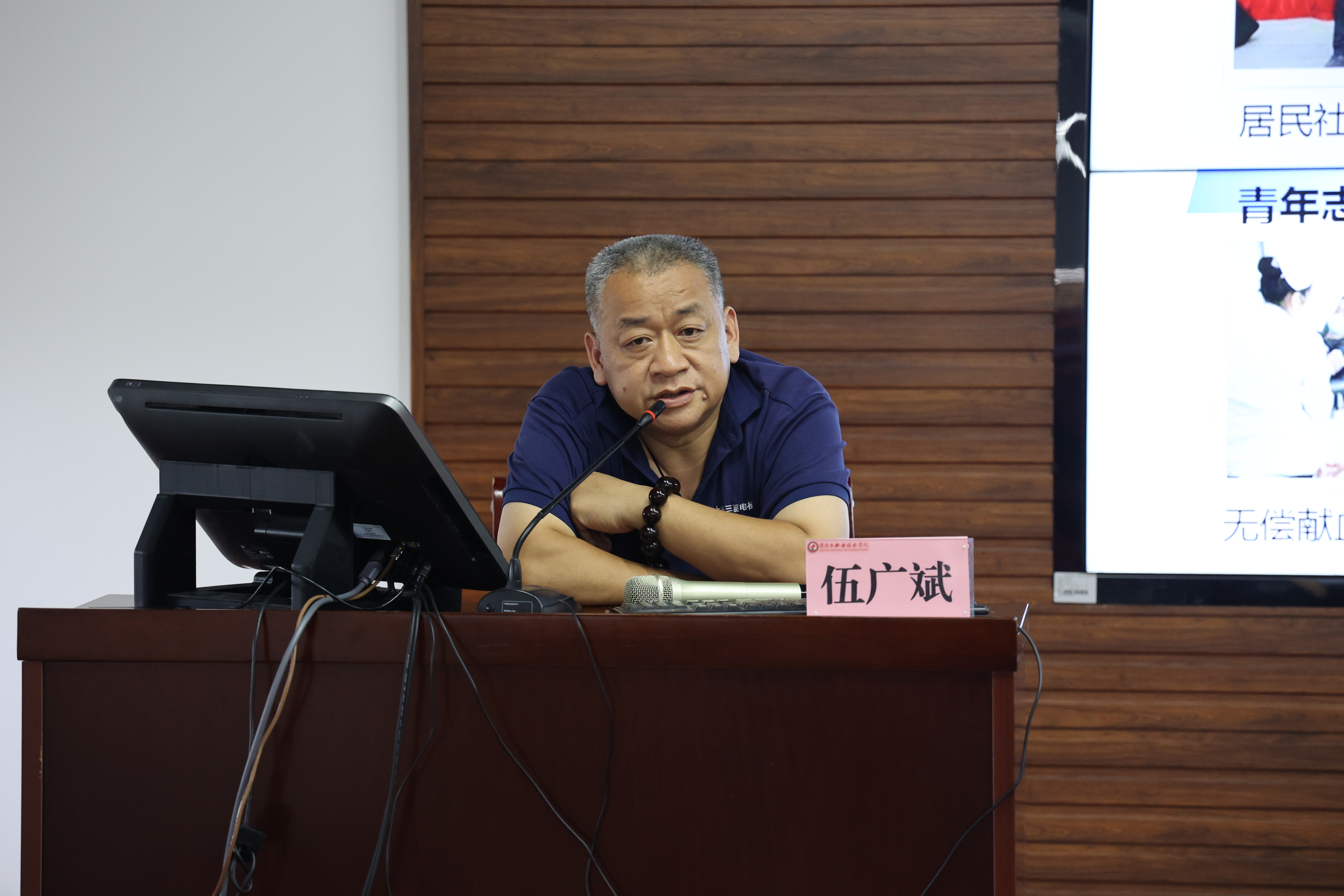 上海三菱電梯華南培訓(xùn)中心教務(wù)長(zhǎng)伍廣斌向在場(chǎng)學(xué)生分享上海三菱的電梯企業(yè)文化。